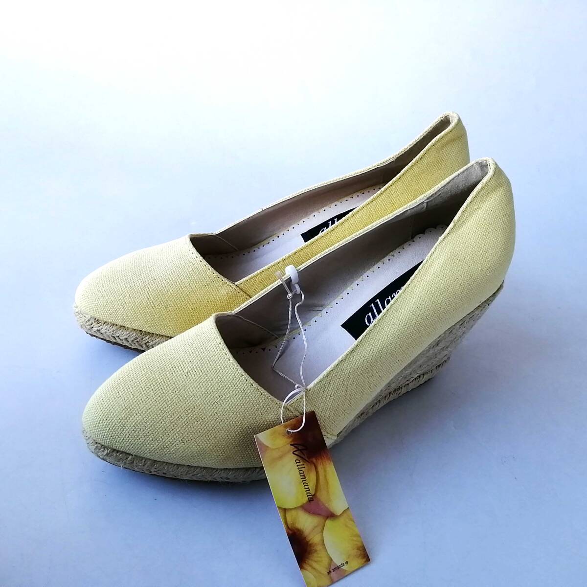 > allamanda アラマンダ ジュート巻きウエッジパンプス サイズ40 25.0㎝相当 イエロー 241016tl03【4点同梱で送料無料】