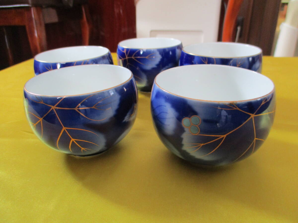 - 深川製磁 湯呑 5客 葡萄金ミル直径7.5高さ5.5