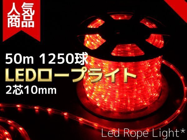 - 【即納】【送料無料】LEDロープライト(チューブライト) 50m 1250球 【電源コントローラー付 買えばすぐに点灯】収納リール付 赤