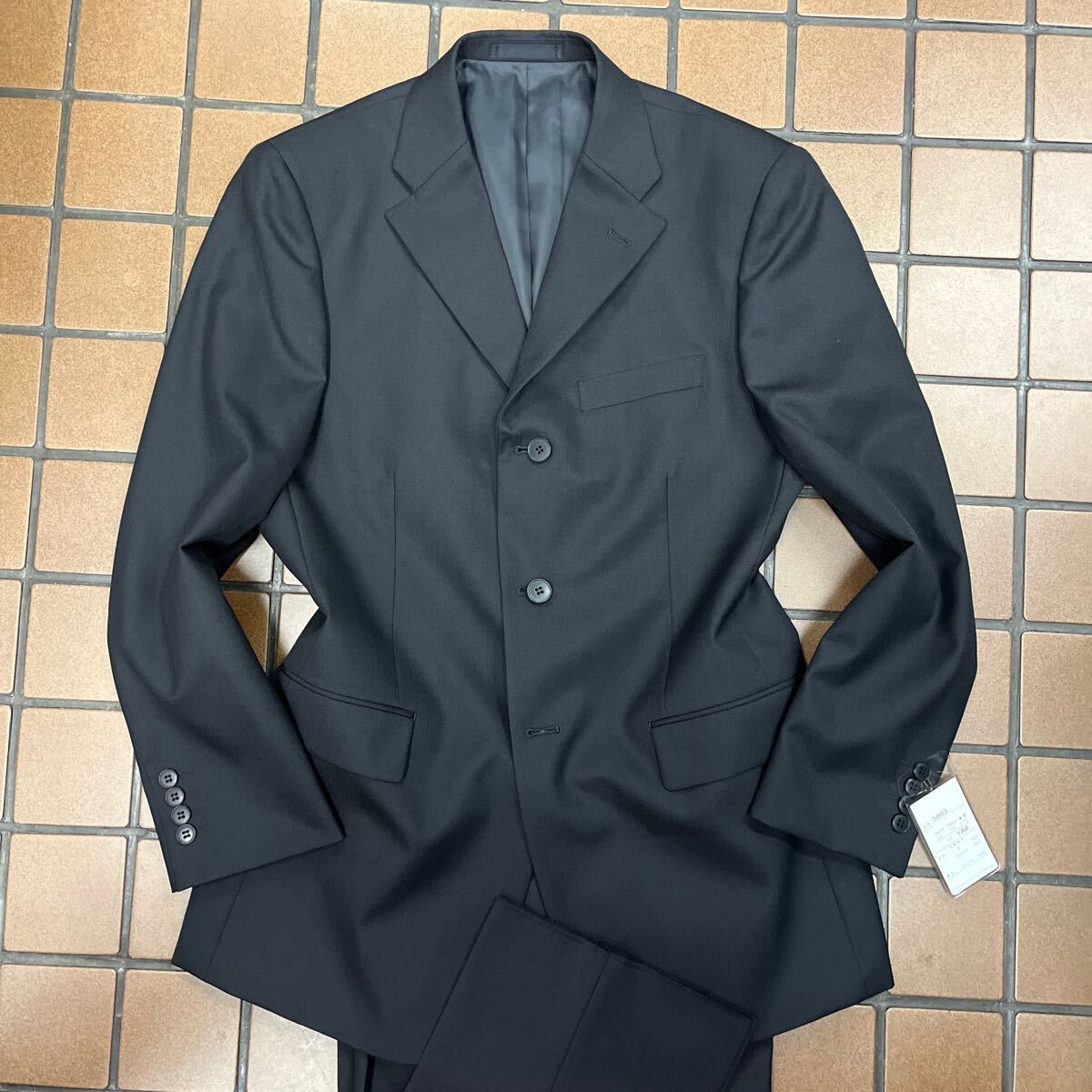 > 新品☆未使用【サイズY6 L★礼服】3Bシングルスーツ 黒 セットアップ メンズスーツ 背抜き ノーベンツ 2タック 冠婚葬祭 喪服 背広