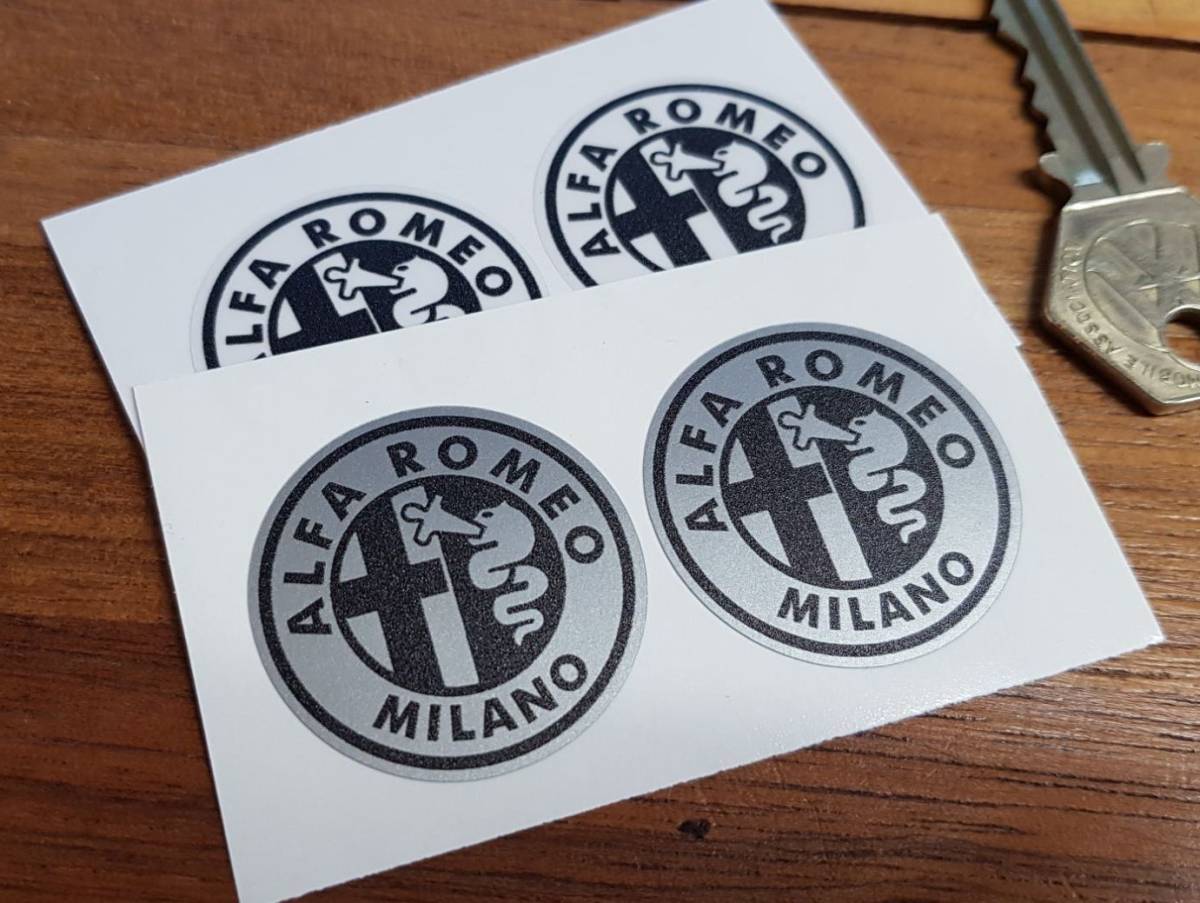 - 海外 限定品 送料込み Alfa Romeo Old Logo Sticker アルファロメオ ステッカー デカール 2枚セット シルバー&クリア 32mm ステッカー