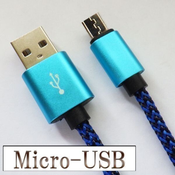 - 高速充電 断線防止 過電流防止 データ転送 【2m 青】 マイクロUSB 充電ケーブル 検) Samsung Sharp Fujitsu LG Kindle DJI Mavic Pro