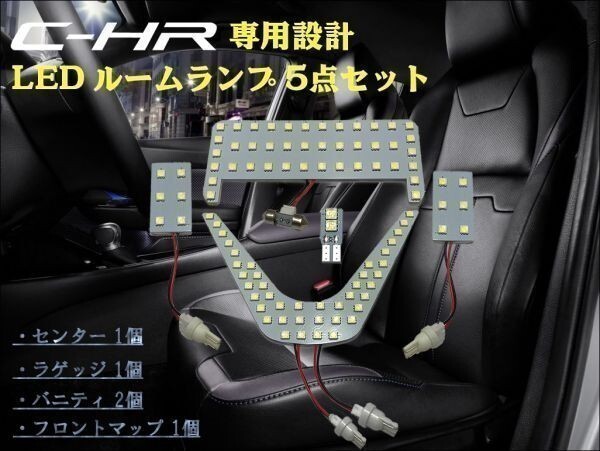 > C-HR CHR LED 6000k ホワイト 白 専用設計 ルームランプ 5点セットバニティ ラゲッジ ZYX10 NGX50 トヨタ 送料205円~