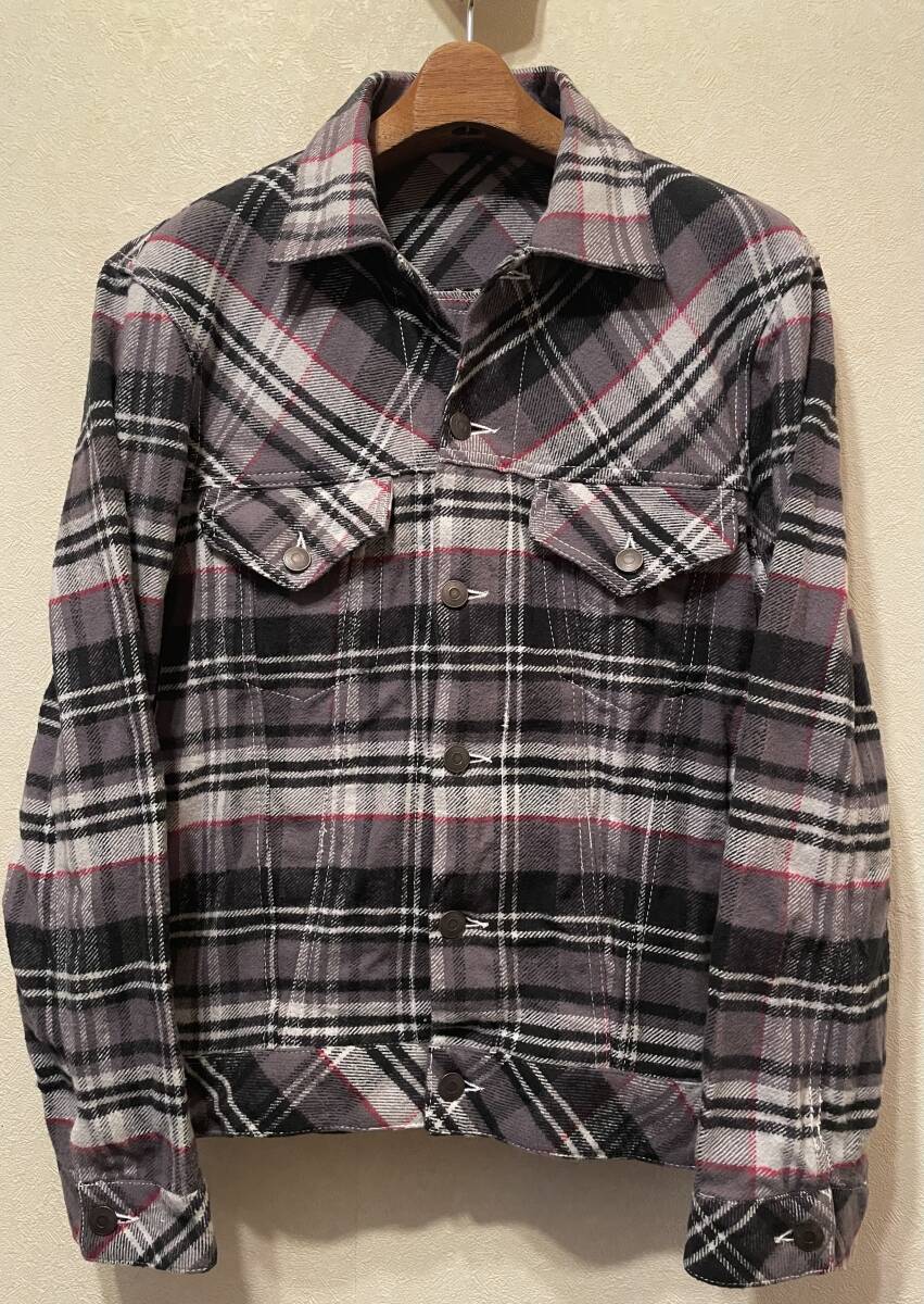 > 00sオールド希少チェック柄ジャケットMジージャンGジャン型トラッカー美品ヘビーネル地コットン黒グレー白シャツ2000s00年代y2kビンテージ