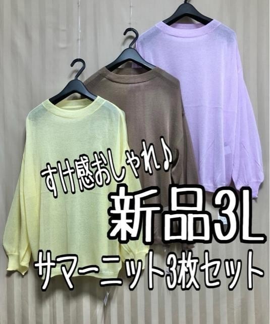 - 新品☆3Lすけ感サマーニット3枚セット♪重ね着にも♪おしゃれカラー☆x591