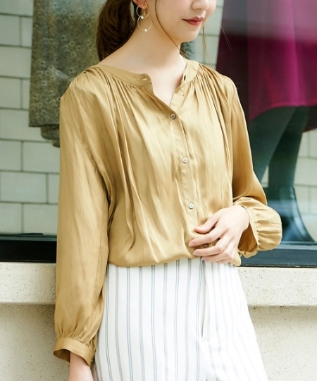 - ★美品・お買い得★ルクールブランle.coeur blanc ビンテージサテンブラウス マスタード