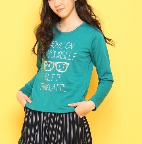 > 新品 PINK-latte ロゴメガネカットソー ダークグリーン XS(150cm) 定価1320円