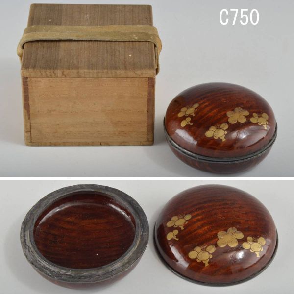 - C00750 了々斎花押 梅画香合 土佐守光貞画:真作