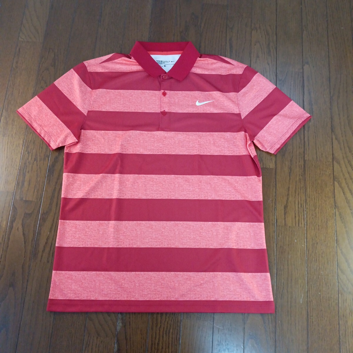 - 1597【中古】NIKE GOLF ナイキゴルフ ゴルフウェア 半袖 ドライフィット ポロシャツ メンズ サイズ L 赤オレンジボーダー柄