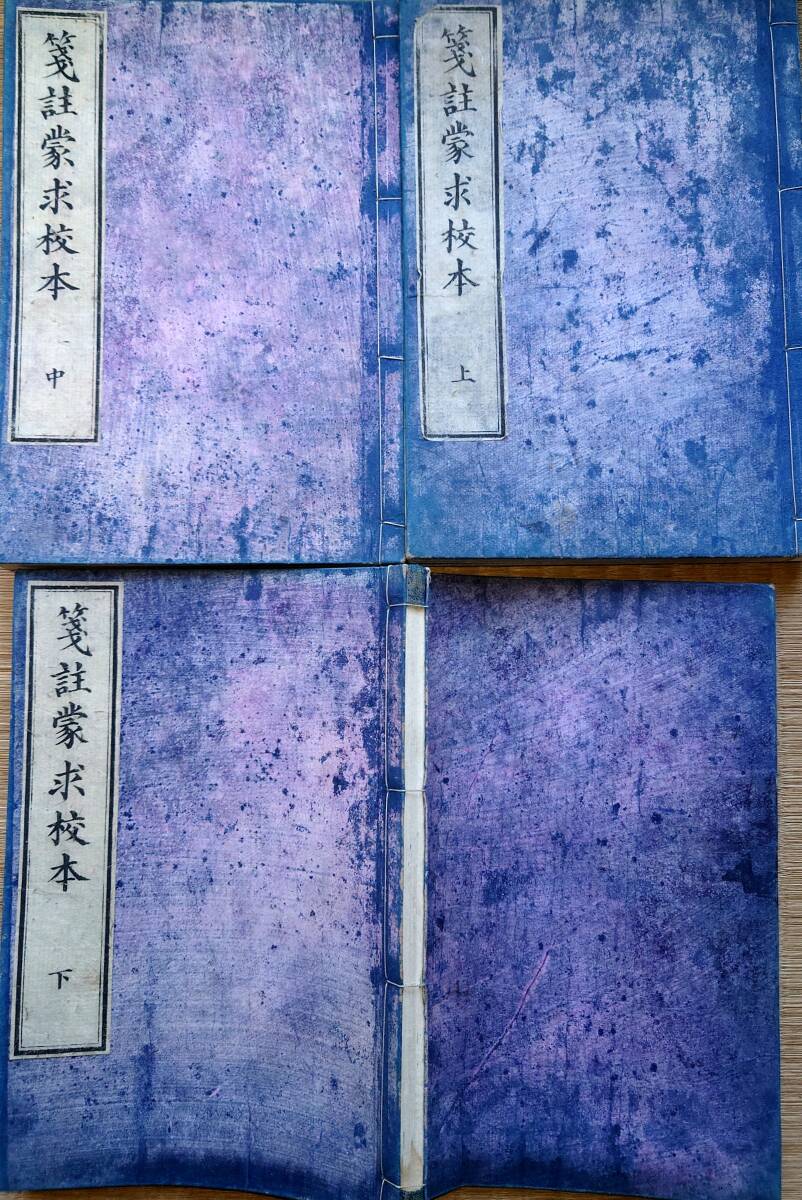 - f24102101〇箋註蒙求読本 上中下3巻 3冊揃 彩色版画入り 明治4年〇和本古書古文書