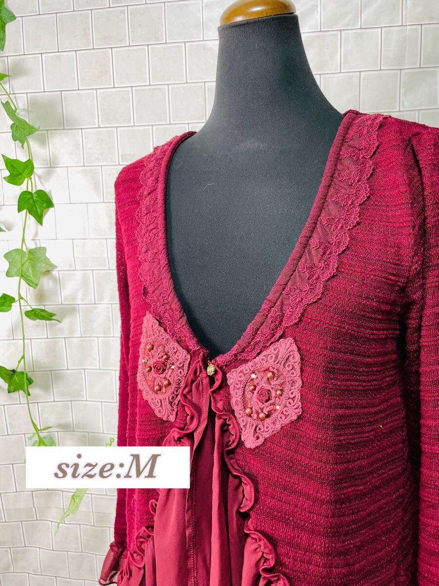 > ★レディース axes femme 刺繍レースフリルカーディガン サイズM ボルドー フェミニン kawaii 大人 211024-038