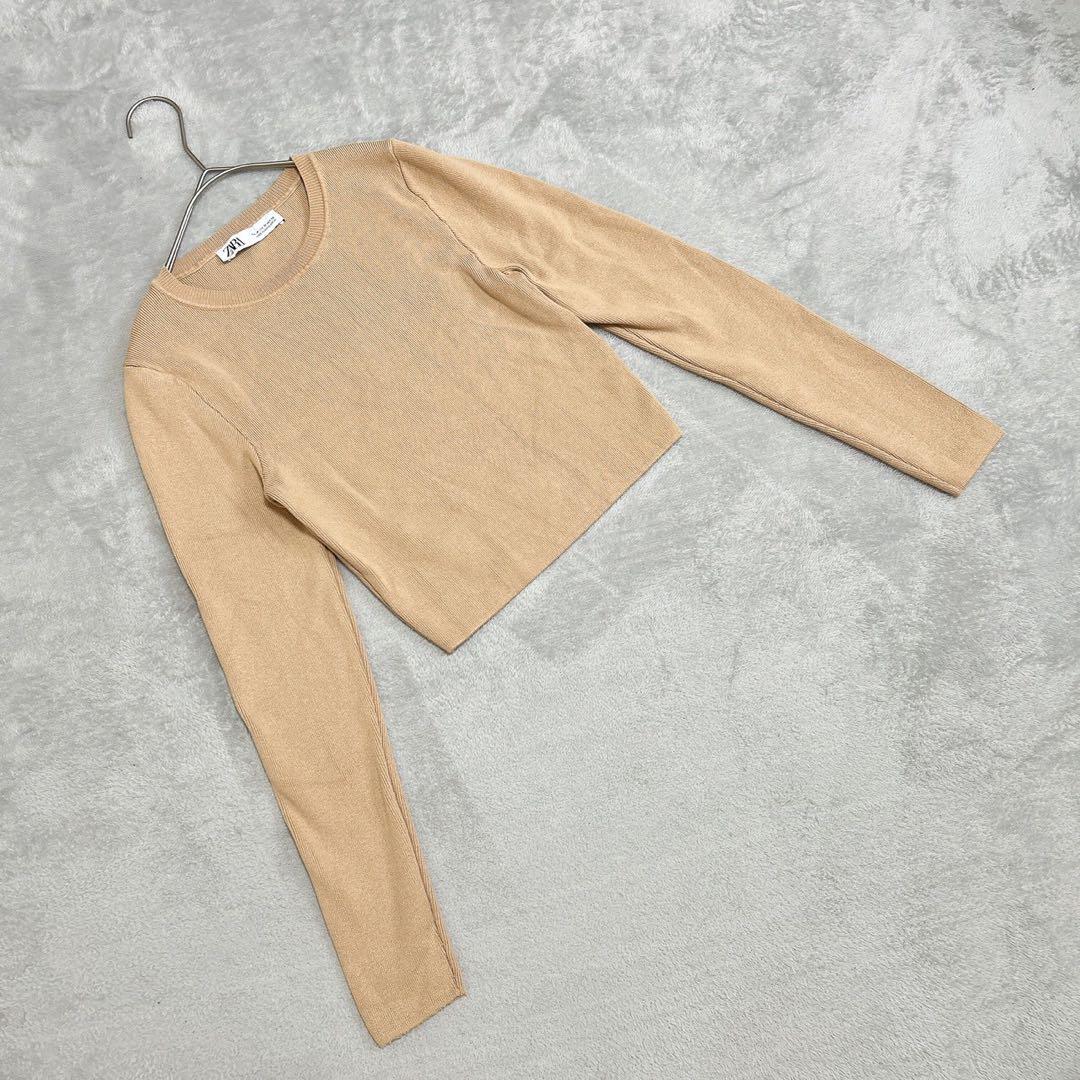 - 【ZARA】ザラ(M) 無地 長袖 レーヨン ショート丈 トップス ニット セーター