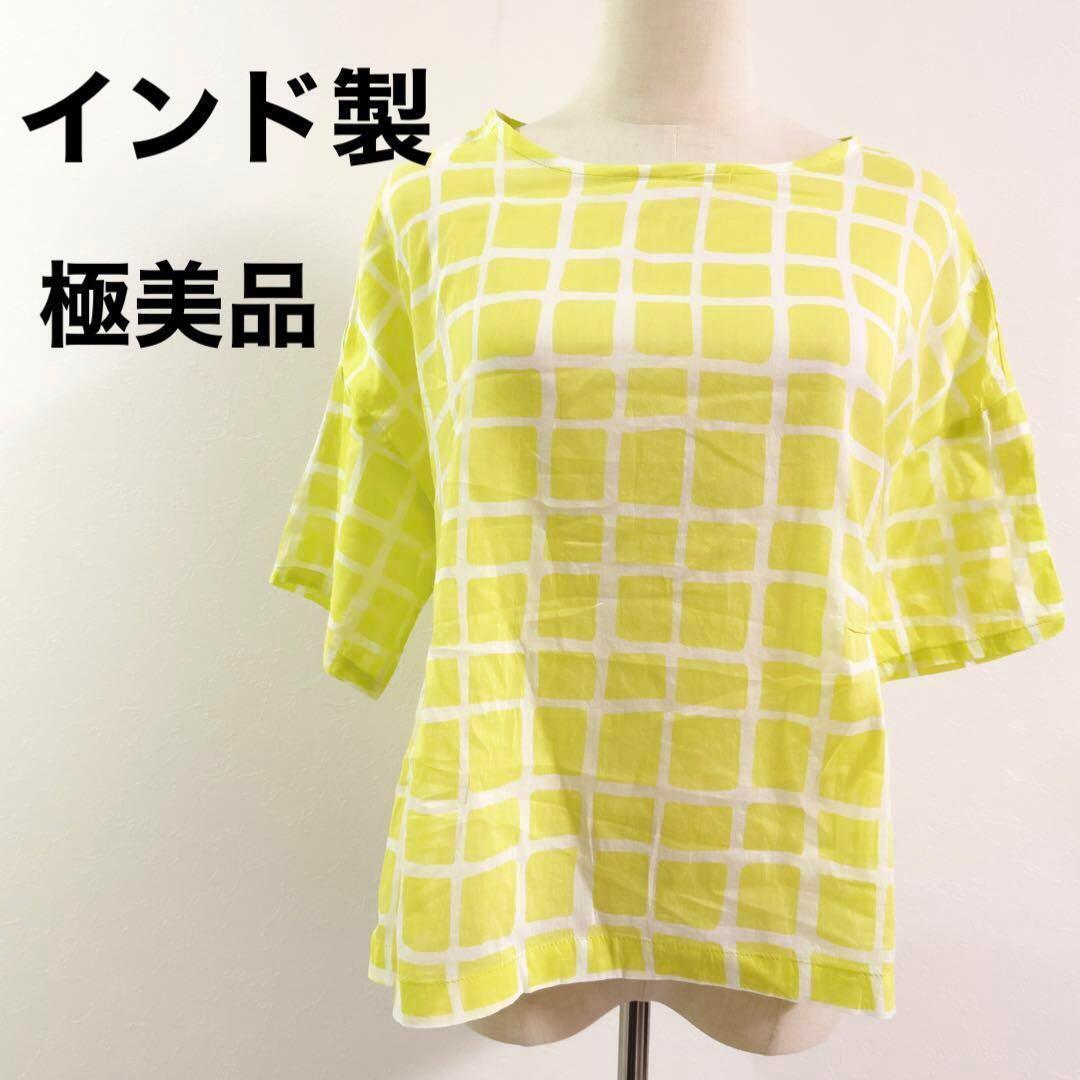- 【極美品】シャツ ブラウス インド製 イエロー チェック お洒落