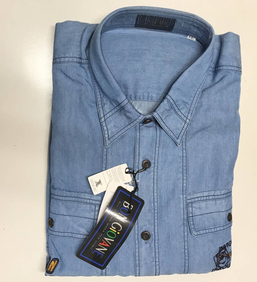 - 【新品】BON GIOVANE 長袖 デニムシャツ LLサイズ 身長175-185 ワンポイント 刺繍 ボンジョバネ 日本製