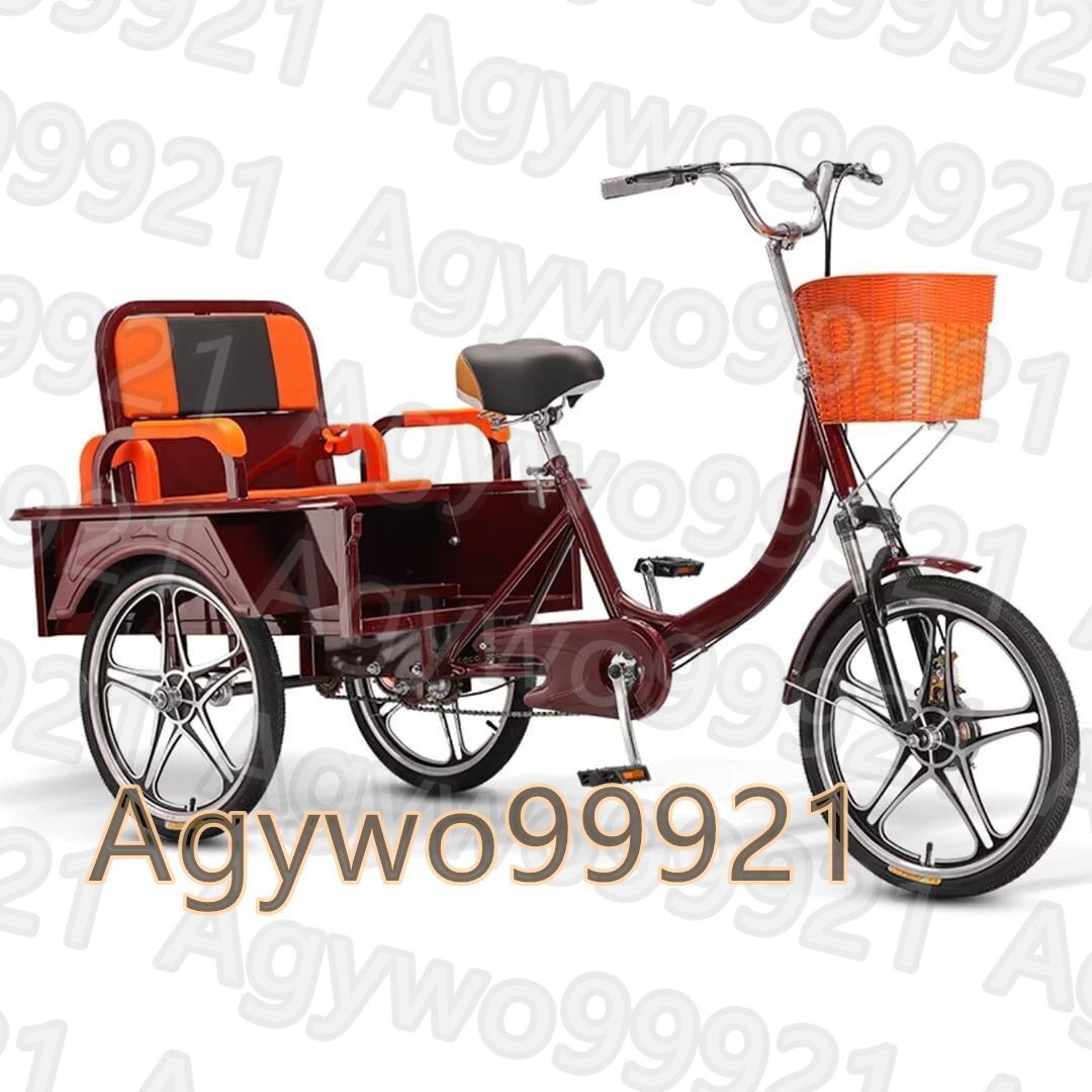 - ショックアブソーバーフロントフォーク付き高齢者用ペダル自転車人力車三輪車、乗客および貨物兼用三輪車、折りたたみ式後部助手席