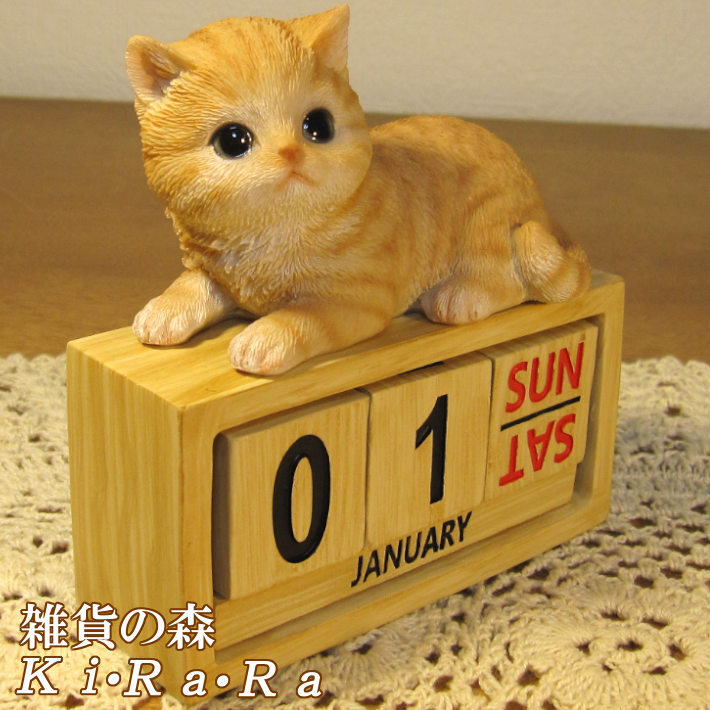- 置物 動物 可愛い 猫の置物 チャトラ キャット カレンダー ねこ 卓上 誕生日 記念日 リアルなねこのフィギュア オブジェ