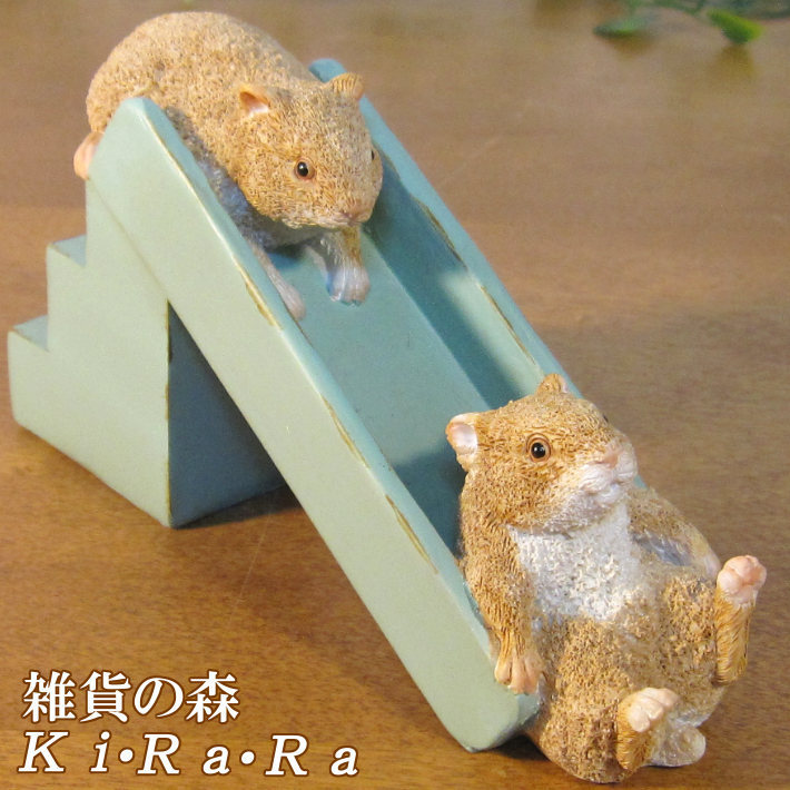 - 置物 動物 可愛い ハムスター B 滑り台 はむすたーの置物 ねずみ ネズミ オブジェ ガーデン ベランダアート 装飾