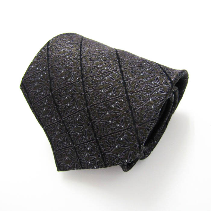 > マリクレール ブランド ネクタイ チェック柄 花柄 リーフ柄 シルク 未使用タグ付 PO メンズ グレー mariclaire