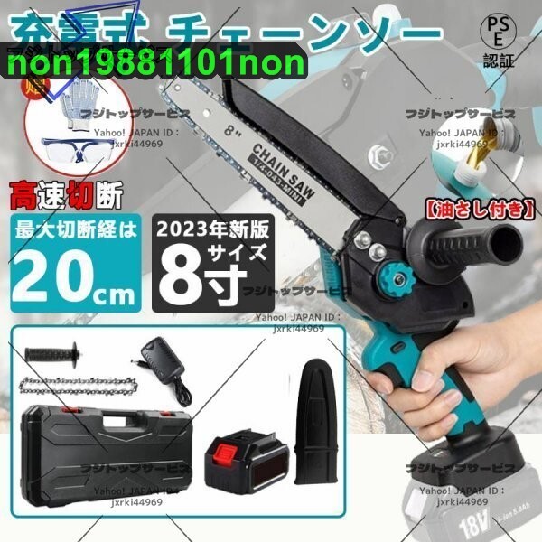 - 充電式 チェーンソー 8インチ 電動 マキタ 18Vバッテリー互換対応 高枝切り 強力 片手 軽量 木工切断 枝打ち 薪作り バッテリー*1