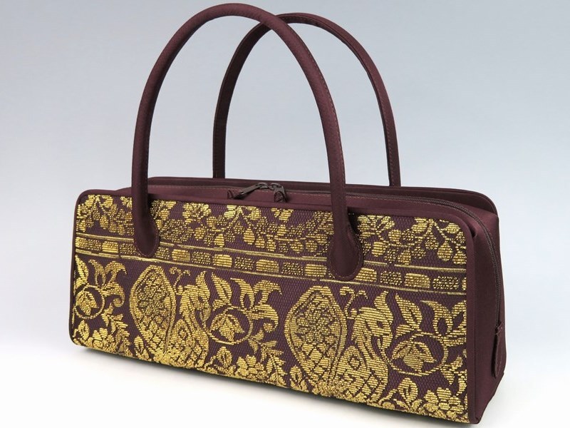 - 【 京都西陣 帯地 】 横長 利休バッグ 高級仕立 日本製