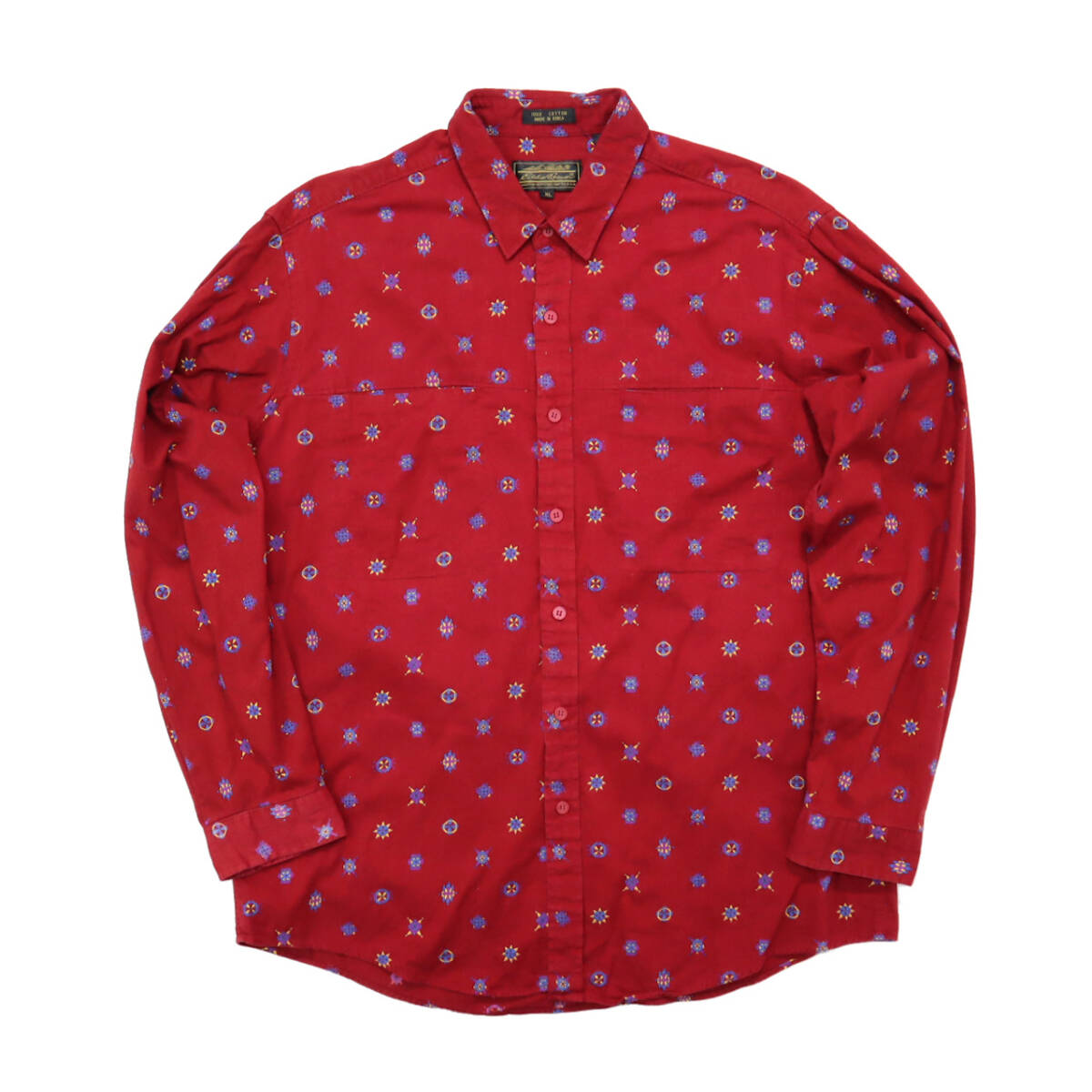 > 80s 90s ビンテージ EDDIE BAUER エディーバウアー 総柄 コットン シャツ 黒タグ ネルシャツ 80年代 90年代 古着 XL アウトドア キャンプ