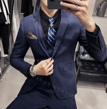 - 新品☆秋スーツ メンズ スリーピースビジネススーツセットアップストライプ 3ピーススーツカジュアルスーツ 洗える 通勤 結婚式 S~6XL