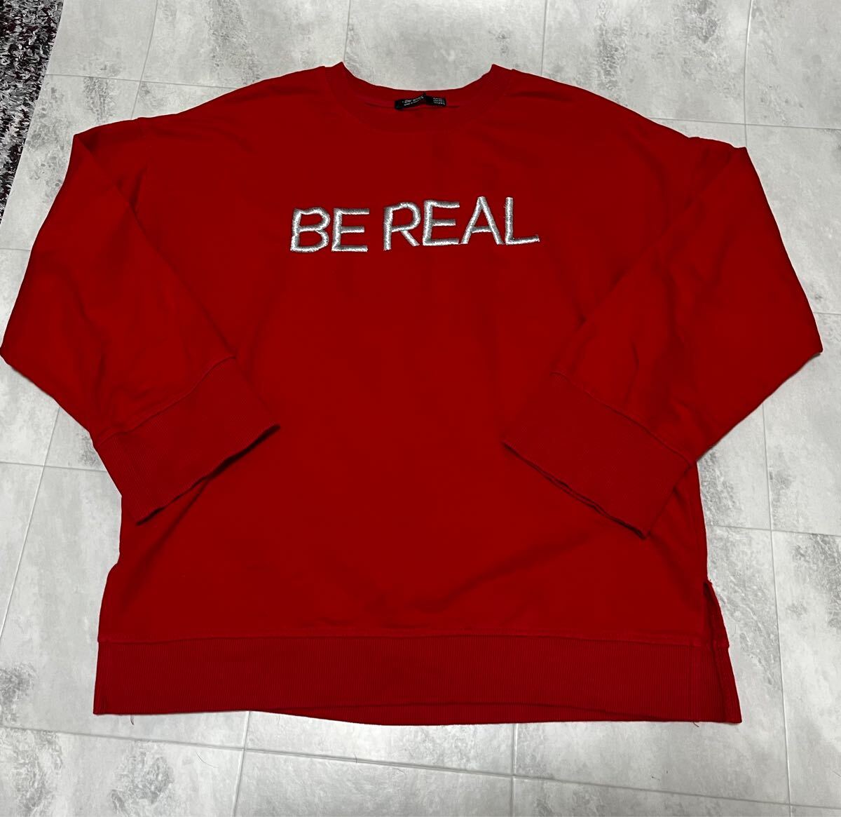 - Bershka ベルシュカ 袖広 刺繍 スウェット 赤 レッド トレーナー 日本のLサイズ相当 オーバーサイズ