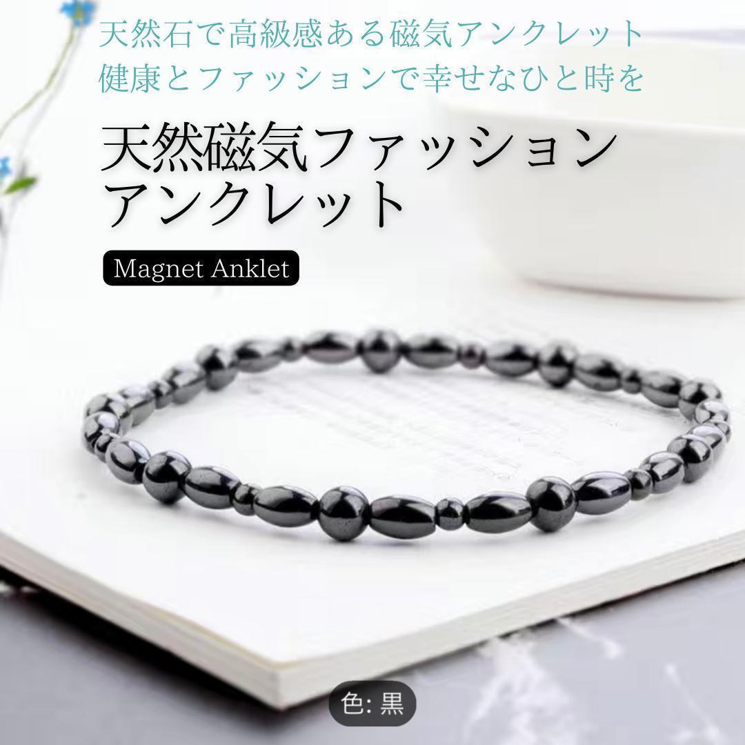 - 【当店限定】黒曜石 天然石の磁気アンクレット 両足2本セット 良質 改善 磁気 電磁波 マイナスイオン ソマチッド 風水 気 精神