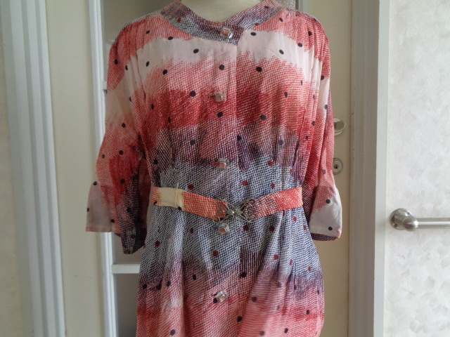 - D106-60 昭和レトロ グラデーション 水玉 ワンピース 蝶型共ベルト 日本製 60年代 70年代 ヴィンテージ アンティーク 長期保管品