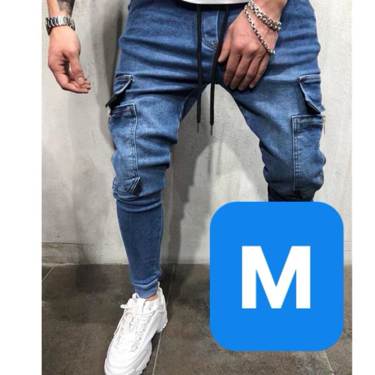- ジョガーパンツ ポケット付き デニム テーパードパンツ ボトムス スキニー トレンド ストリート メンズ レディース オルチャン ブルー 青 M