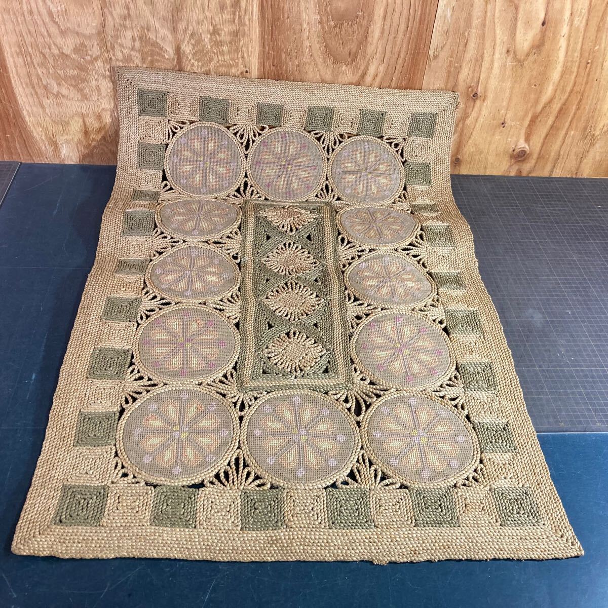 - 【13623P115】ハンドメイド ラグ マット MADE IN CHINA 中国 手織り? 麻? 素材不明 アクセントラグ インテリア リビング 手作り