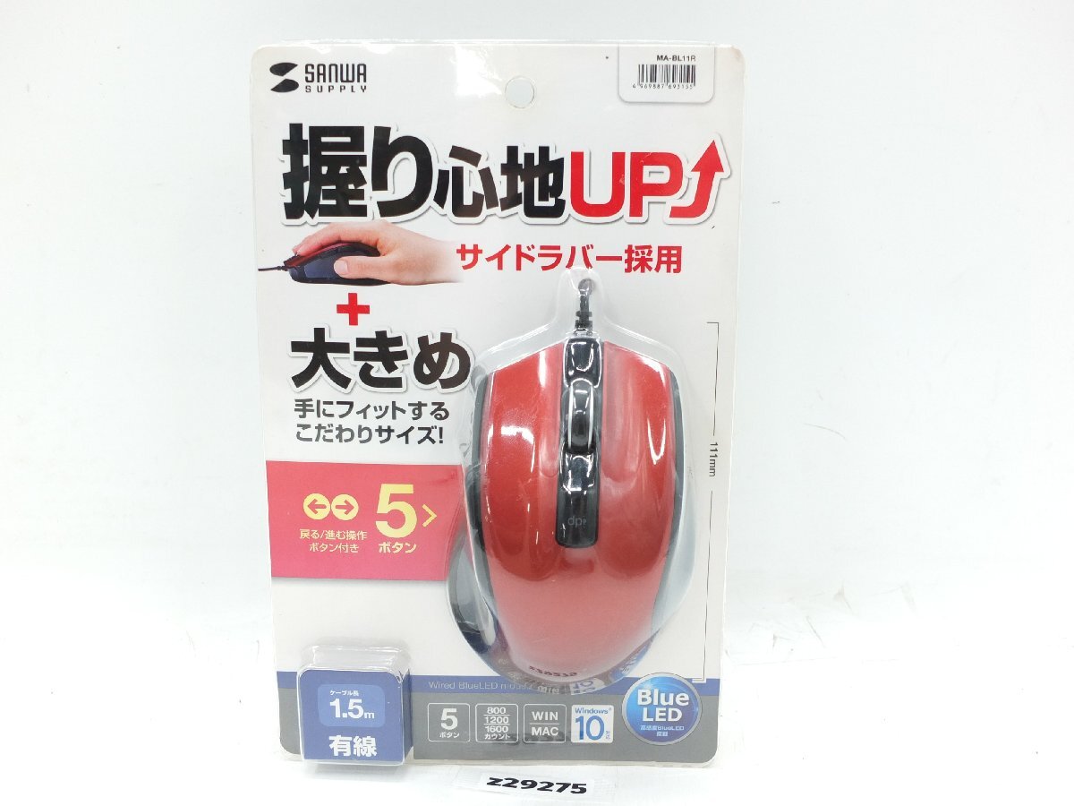 > 【z29275】新品・未開封品 SANWA SUPPLY サンワサプライ 握り心地UP 大きめ サイドラバー採用 5ボタン ブルーLED 有線 マウス 格安スタート
