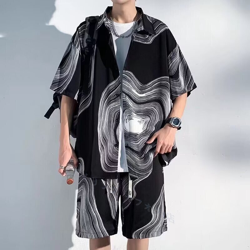 - 新品☆セットアップ メンズ 半袖 半ズボンジャージ上下セット 半袖シャツ ショートパンツ 通気 吸汗 海 ビーチオシャレ M~3XL