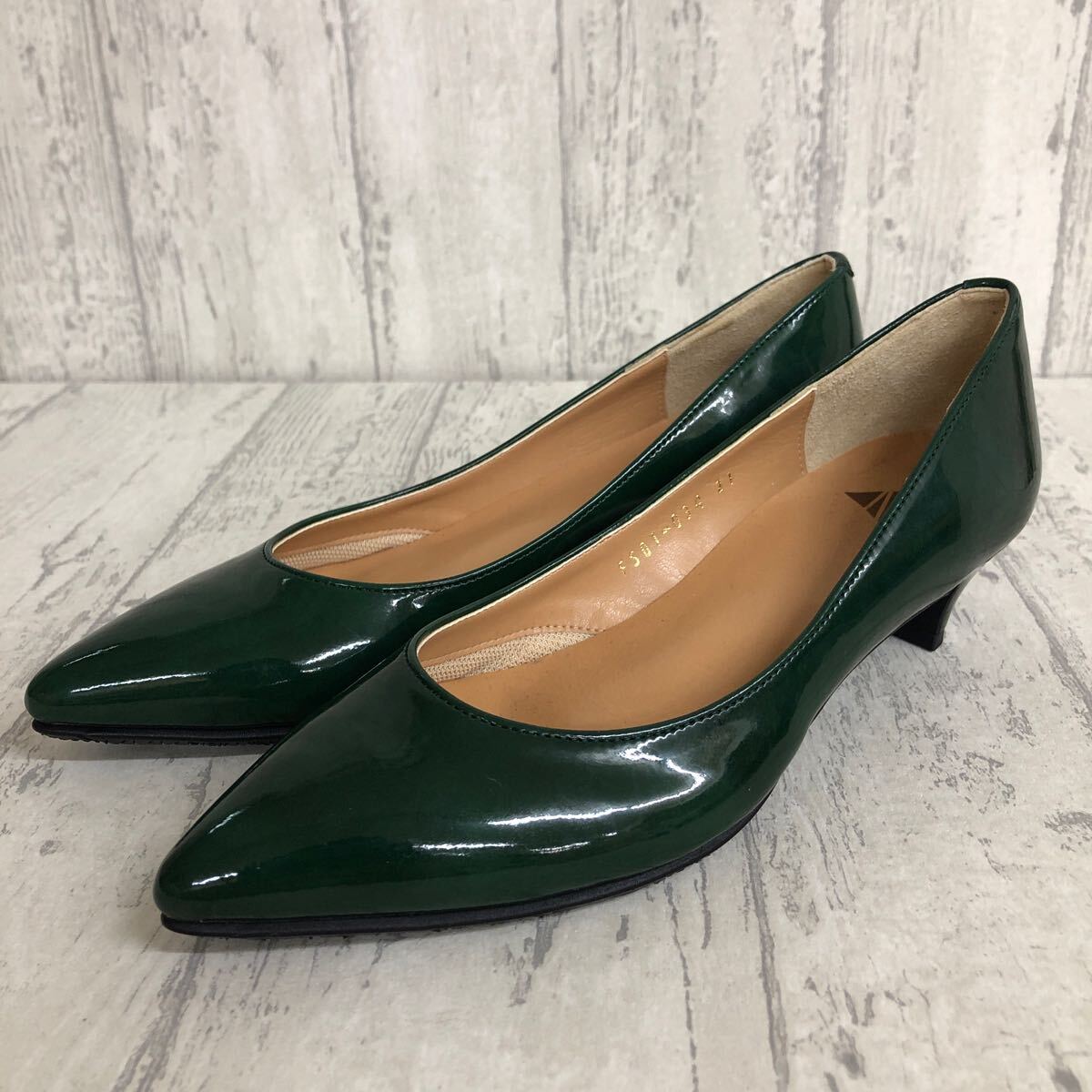 > エナメルパンプス 21㎝ シンデレラサイズ Absorb Stopper アブソルブストッパー 日本製 FS01-034 グリーン レディース YK53