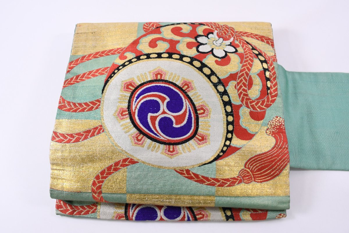 - 名古屋帯 アンティーク 太鼓 市松模様 帯丈341cm ★着物屋 ne-12495 桜庭呉服店