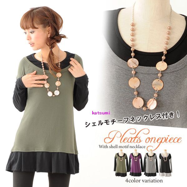 - 即決★バイカラー切り替え裾プリースワンピース ブラック 139700