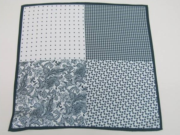 - ◆4柄 ポケットチーフ◆日本製◇白×グリーン 緑 プリント シルク100%◇ペイズリー ドット 水玉 千鳥格子 小紋 メール便可 ACC-PR5