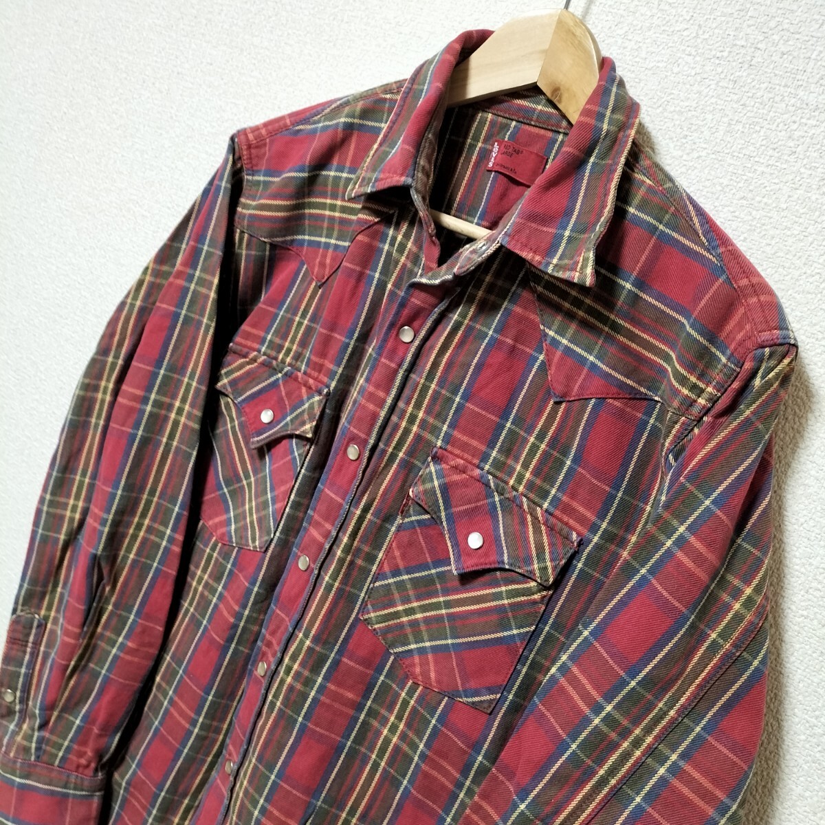 > 美品☆00s OLD Levi's RedTab 長袖 ウエスタンシャツ コットン ややヘビー 厚手 チェック sizeL オールド リーバイス レッドタブ 古着 USED