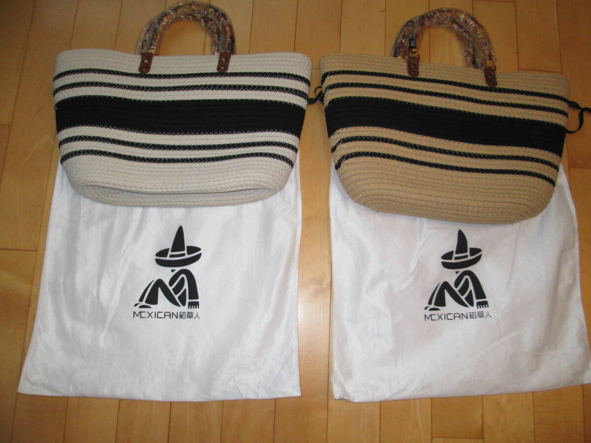 > ■トートバッグ ベージュ&黒(38cm×26cm×10cm)★2個セット★ メキシコ 未使用品