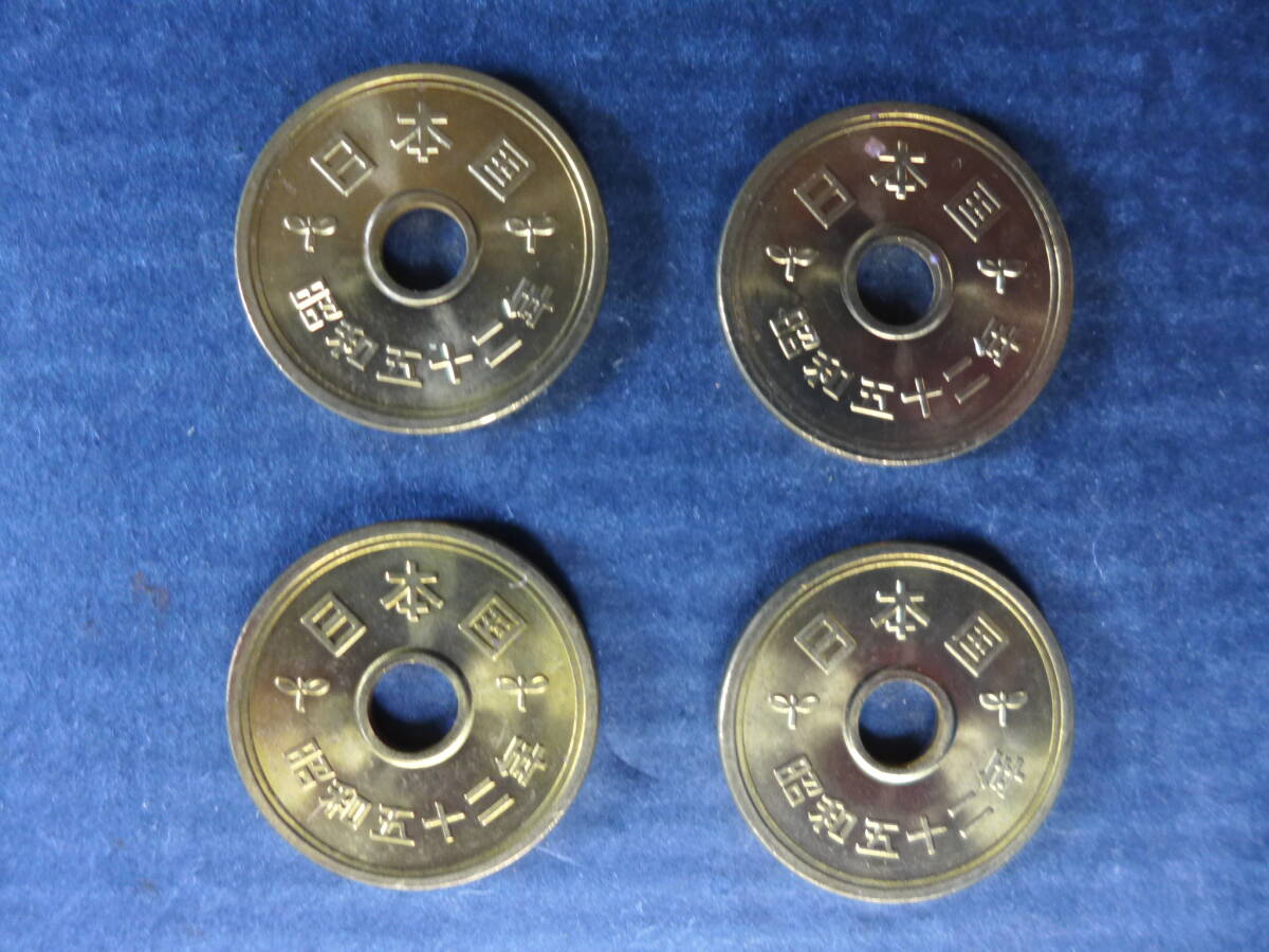 - ★ 【ロール出し】 昭和五十二年 5円黄銅貨 硬貨 4点 昭和レトロ ★