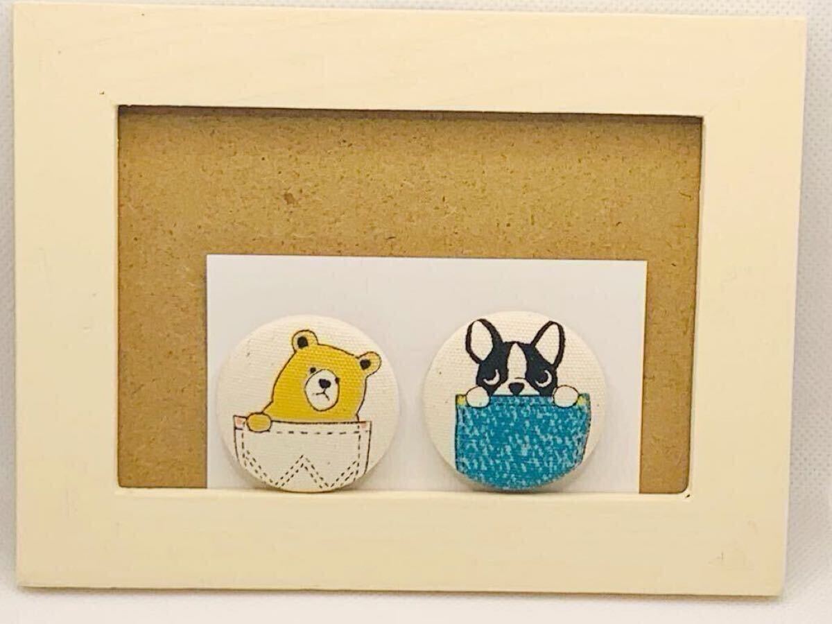 - くるみボタン(11-1)マグネット/磁石/ハンドメイド/2個セット/くま/犬