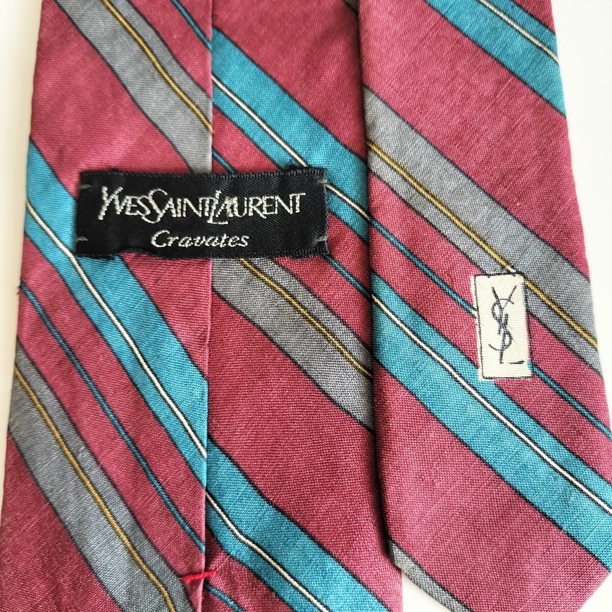 - イヴサンローラン(YVES SAINT LAURENT)赤ブルーグレーストライプネクタイ