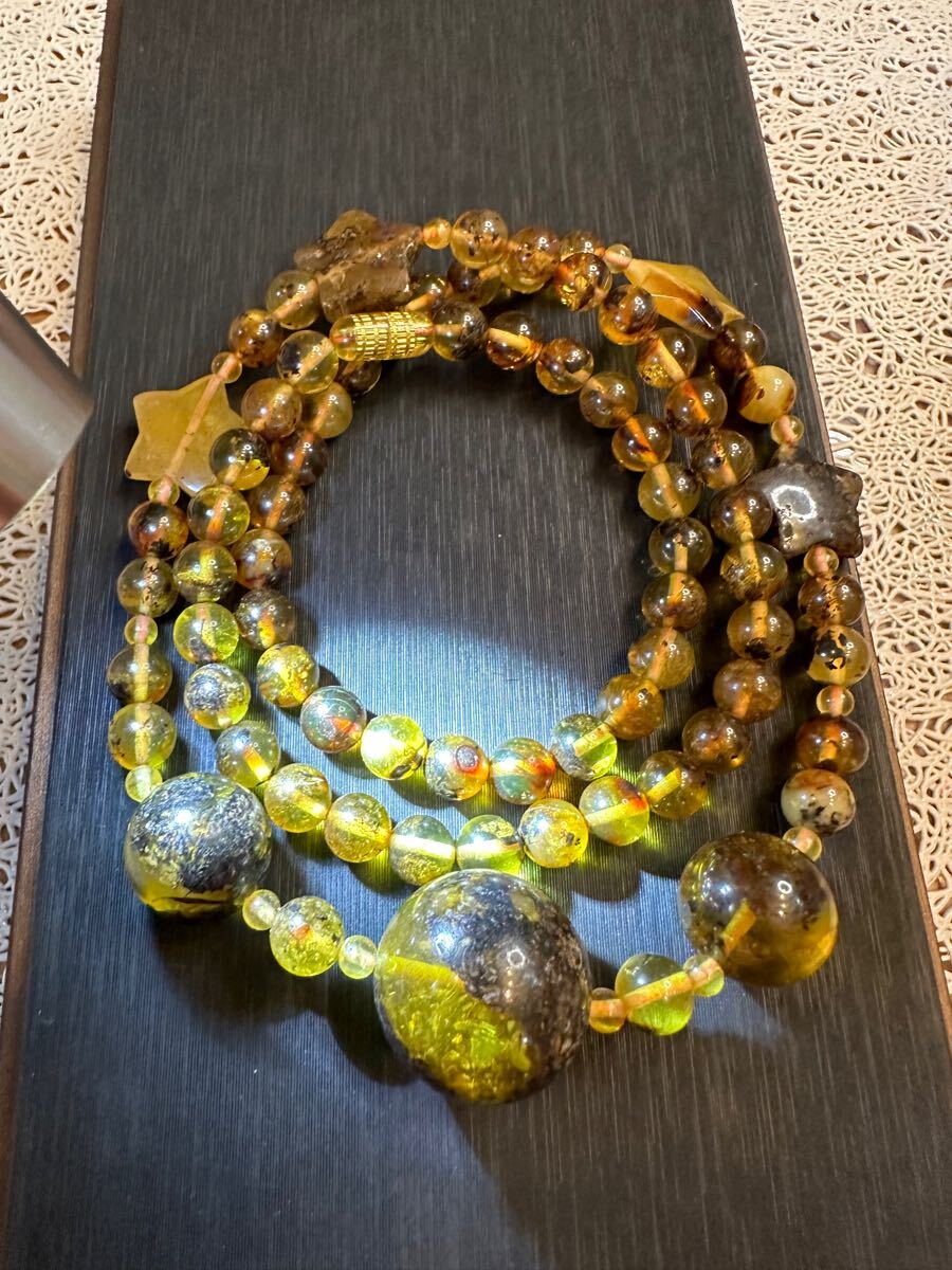 - K-564 天然 アンバー 本琥珀 薬草珀 ネックレス パワーストーン 天然保証