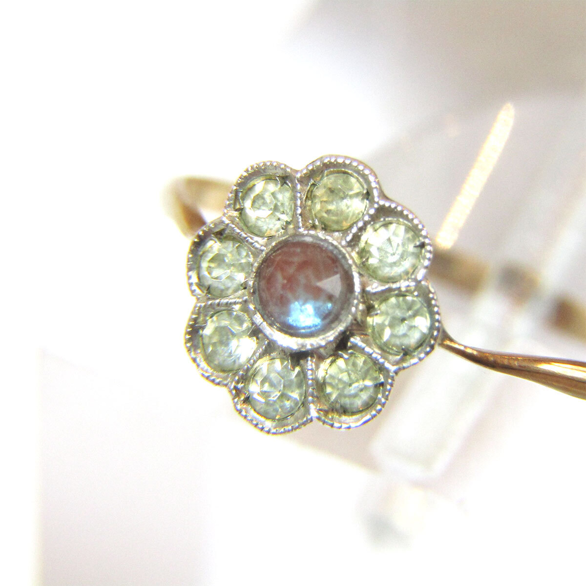 ★Antique Saphiret & clear glass flower motif ring