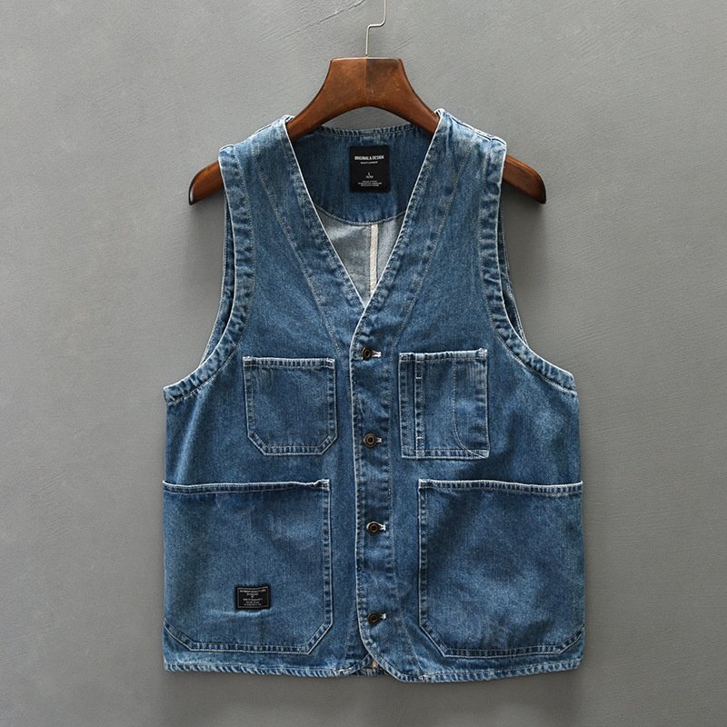 - ☆新品 デニムベスト チョッキ ベスト /メンズ ジレベスト 春秋冬 ワンウォッシュ カーゴ ワークスタイル ブルー M