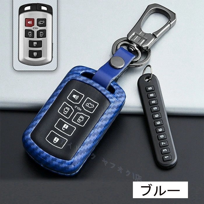 - トヨタ 対応スマート キーケース TOYOTA キーケース 亜鉛合金炭素繊維 キーカバー キーホルダー 2018-2019 sienna キーケース ☆ブルー