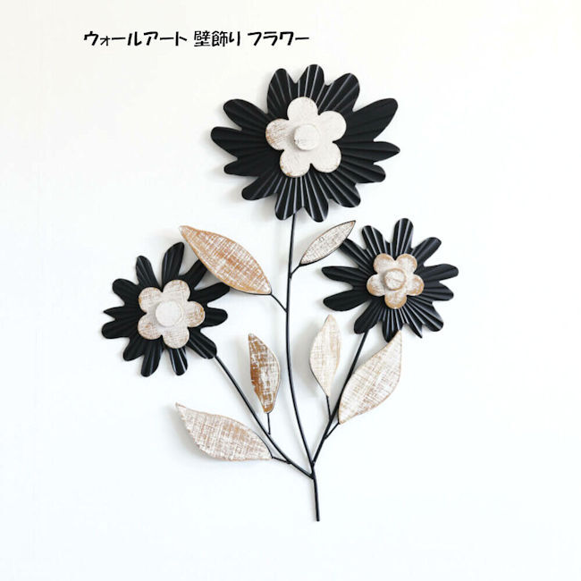 - アイアンウォールアート「フラワー」幅50cm 壁飾り 壁面装飾 インテリアプレート(1314)