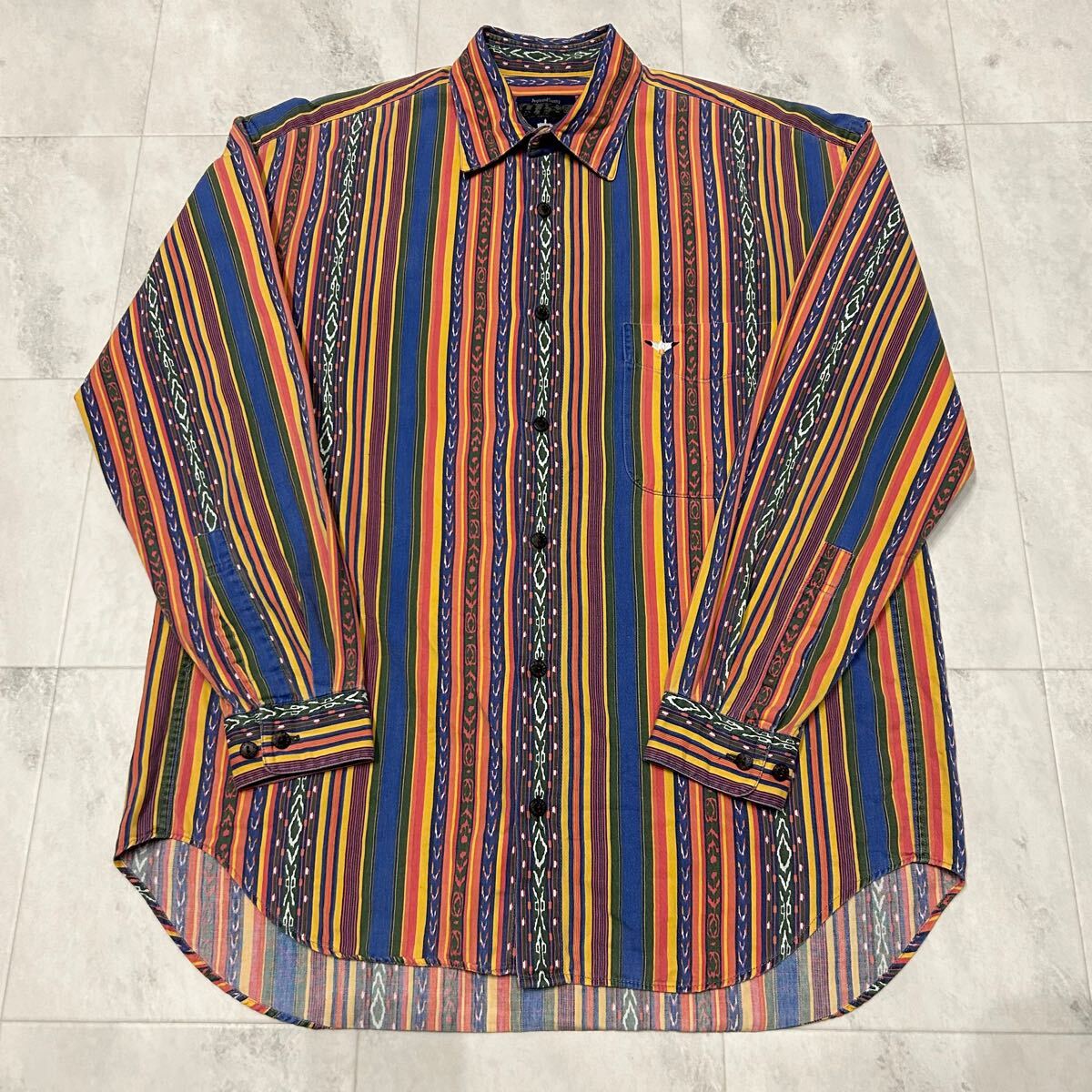 - GOOSE & GANDER 総柄 マルチカラー ストライプ 民族柄 ガチョウ 刺繍 レトロ アート ビンテージ 長袖シャツ 綿100% イタリア生地
