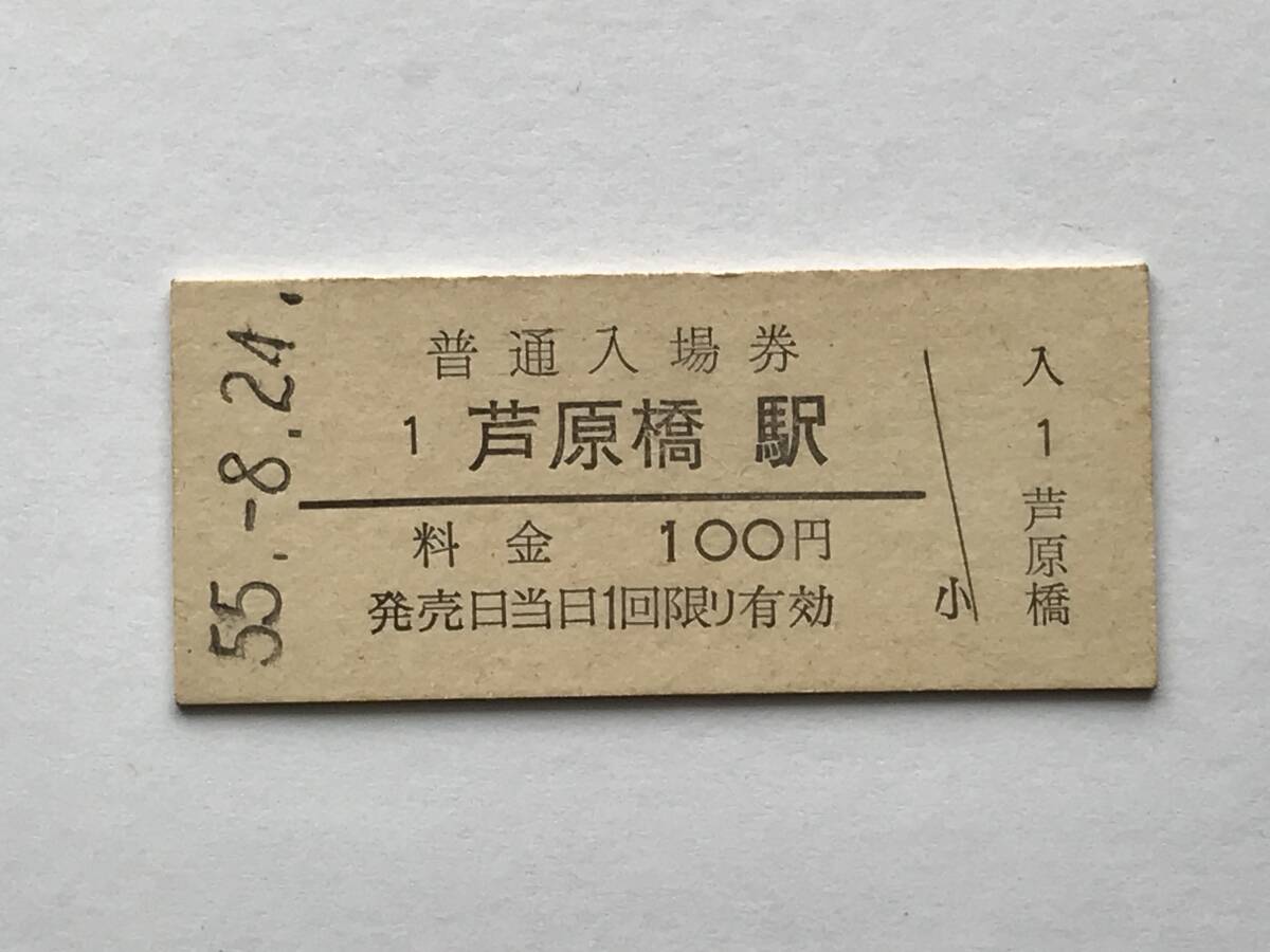 > 昔の切符 きっぷ 硬券 芦原橋駅 普通入場券 料金100円 サイズ:約2.5×約5.8㎝ S55 HF5352 くるり 岸田繁