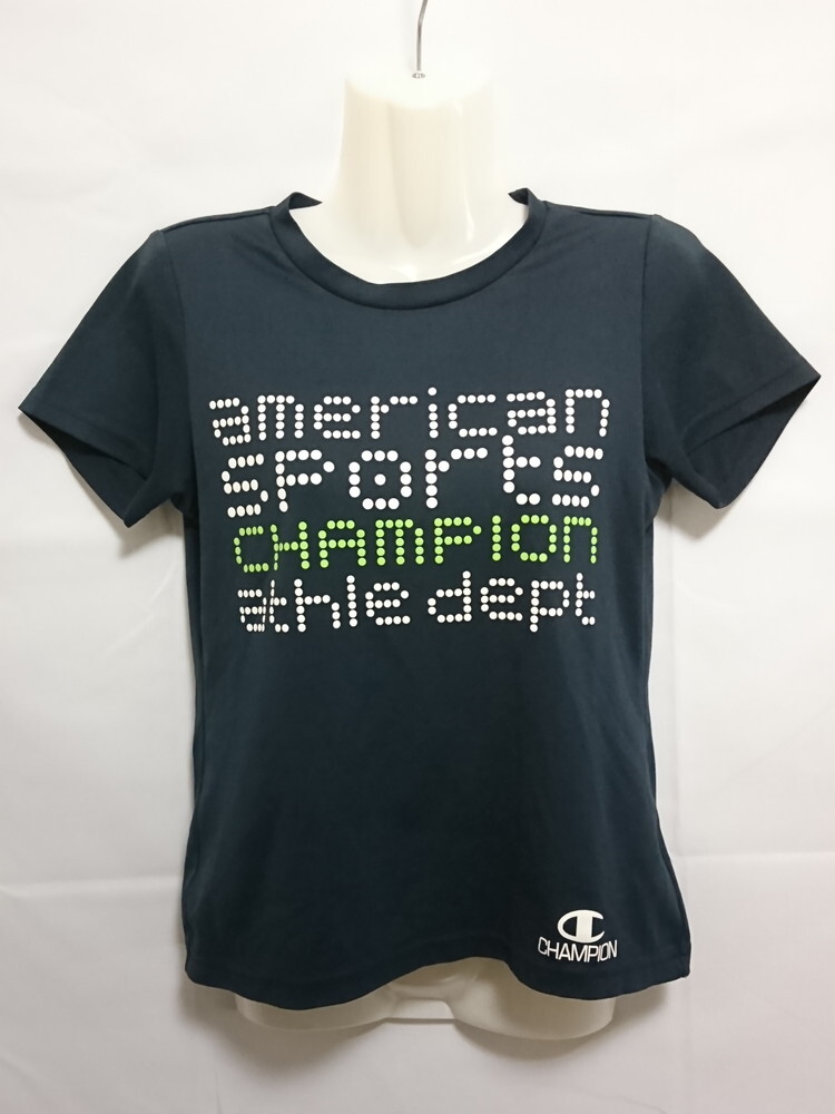 - 古着 レディースM Champion/チャンピオン Tシャツ ポリエステル 吸汗速乾 スポーツ ジョギング トレーニング ランニング ネイビー CLM4312